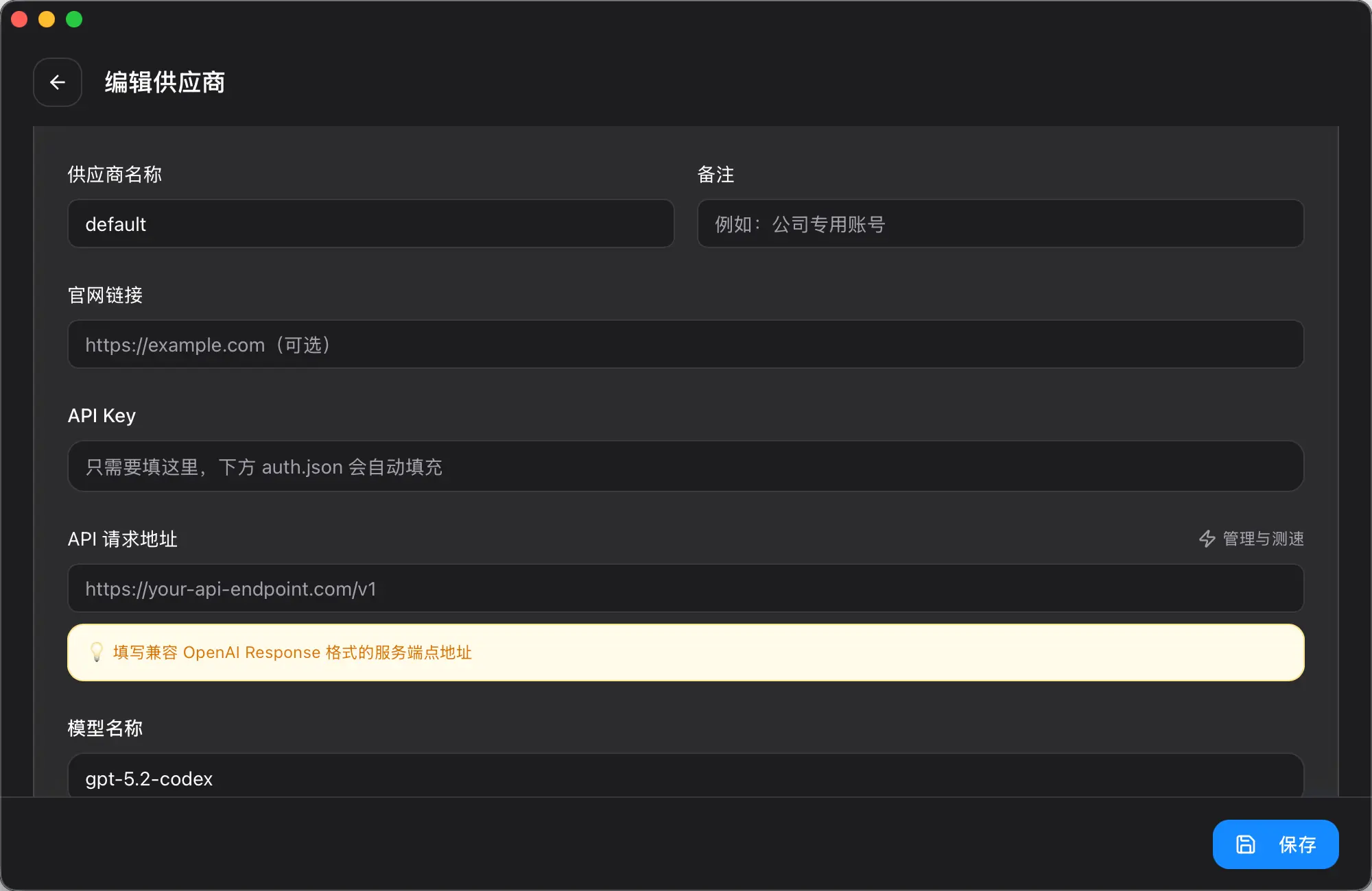 除了 “API KEY” 和 “API 请求地址 “ 外,其他都可随便填